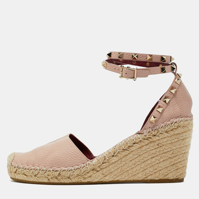 Valentino Blush Pink Leather Rockstud Ankle Strap Wedge Espadrille Sandals Size 41 1205312 (розовый, lpn30873448)