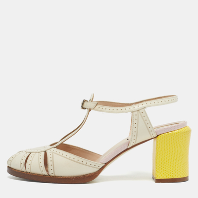 This pair of Chameleon sandals by Fendi is stunning. The shoes have been crafted from lizard embossed leather and the exterior is in tricolor. The sandals are styled with peep toes, cutout details, and buckle ankle fastenings, and are elevated on 6 cm block heels.