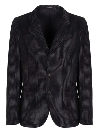 black corduroy three-button fastening notched lapels two pockets long sleeves