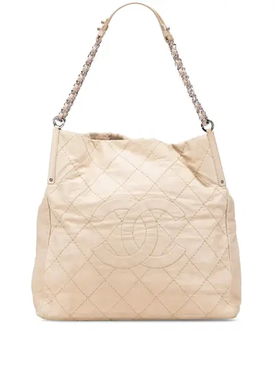 quilted leather body leather-woven chain straps with leather shoulder guards top magnetic snap closure interior zip and slip pockets brown Serial Number: 15951697 This item has no inclusions. Condition: GOOD. This previously owned and used item is in good condition with minimal signs of use. This may include fading of material or plating and scratches. Please refer to the photos on this product page for a detailed view of the item, including any damages declared.
