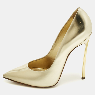 Perfect companions to your skirts and dresses, these Casadei pumps are totally worth buying They come crafted from gold leather in a pointed toe silhouette and are finished with the signature blade heels. Comfortable leather lined insoles ensure you walk in them easily.