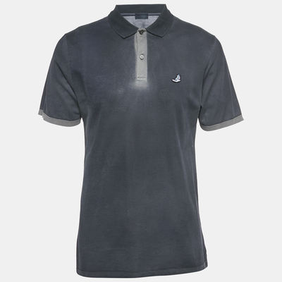 Lanvin Navy Blue Embroidered Cotton Distressed Polo T-Shirt XL 1204615 (lpn30881627)
