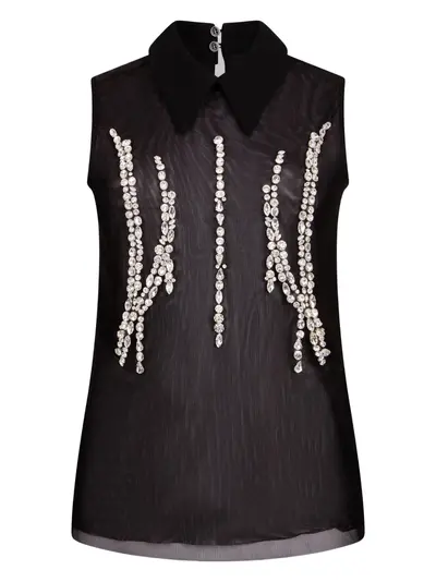 black rhinestone embellishment shirt collar sleeveless keyhole back opening