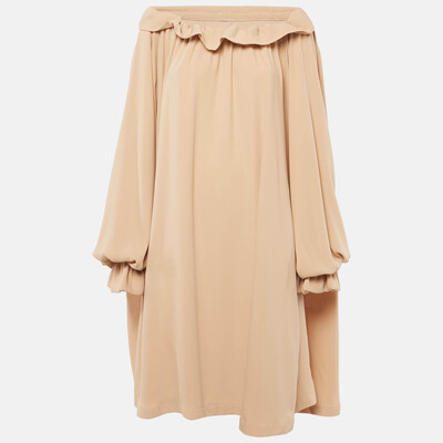 Minimalist yet impactful, this Maison Martin Margiela dress is tailored in fluid beige crepe with an oversized silhouette. The short length balances relaxed structure with modern elegance, embodying the maison’s signature approach to understated, avant garde style. Perfect for effortless day to night dressing.