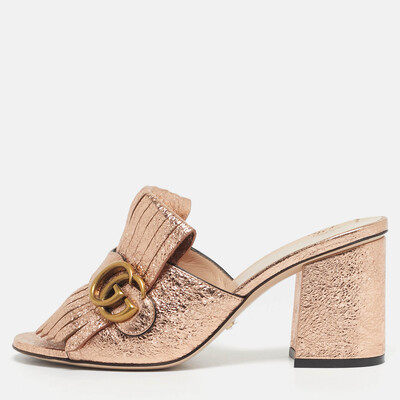 Gucci Metallic Leather GG Marmont Fringe Details Open Toe Sandals Size 37 1207318 - 1