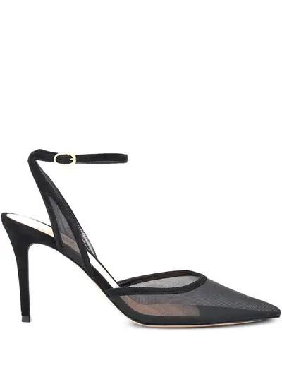black ankle strap buckle fastening pointed toe