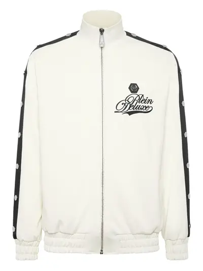 off-white black side stripe button embellishment high neck zip fastening elastic cuffs and hem