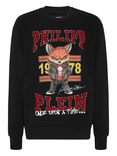 black fox graphic print crew neck ribbed cuffs ribbed hem rear applique detail