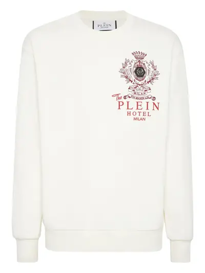 off-white crest embroidery round neck long sleeves ribbed cuffs