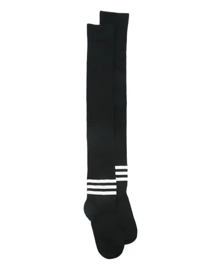 black ribbed texture knee-high length stripe detailing seamless toe Be sure before opening, as socks and hosiery can only be returned in their original, unopened packaging.