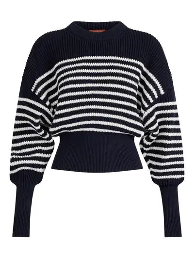 blue white stripes striped pattern ribbed knit long sleeves round neck ribbed hem