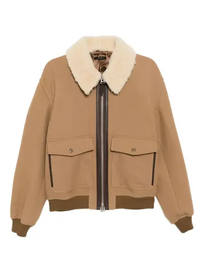 camel brown front two-way zip fastening two side inset pockets two side flap pockets detachable collar