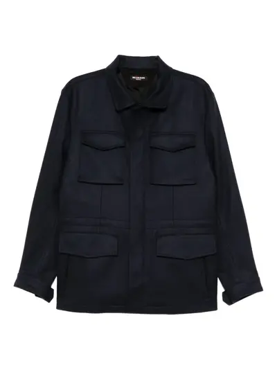 navy blue front button and zip fastening four front flap pockets long sleeves