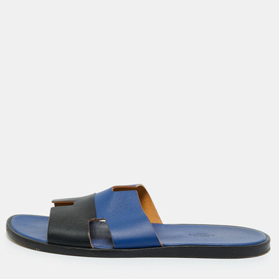 Hermes Black/Blue Leather Izmir Flat Sandals Size 45 1209319 (чёрный, lpn30899195)