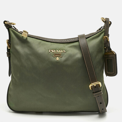 Prada Green/Brown Nylon Flat Messenger Bag 1209136 - 1 small