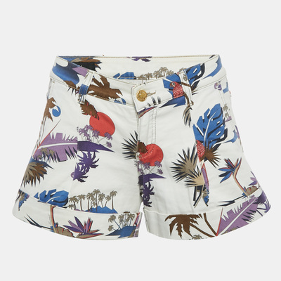 Casual with a designer edge, these Gucci shorts are crafted from white denim and detailed with printed motifs. Their tailored cut and luxury finish make them a standout choice for chic off duty dressing.