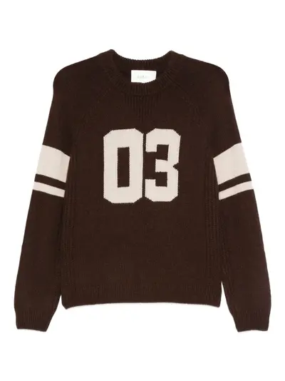 brown number intarsia knit raglan sleeves crew neck ribbed cuffs cashmere