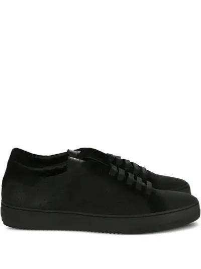 black perforated detailing lace-up fastening flat sole round toe suede upper