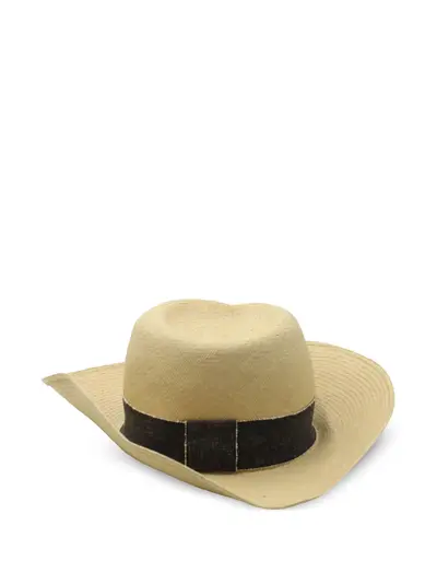 Maison Michel straw grosgrain-ribbon fedora hat 31970432 (lpn30902714)