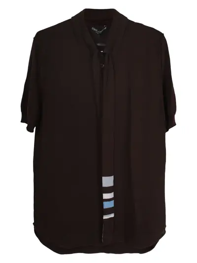 brown virgin wool front tie fastening short sleeves Condition: GOOD. This previously owned and used item is in good condition with minimal signs of use. This may include fading of material or plating and scratches.