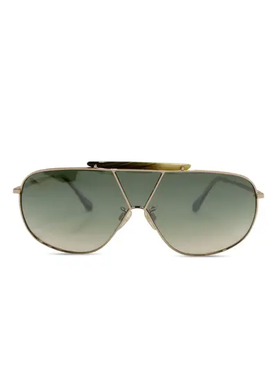 gold-tone gradient lenses pilot frame logo detail These glasses come with a protective case. Condition: GOOD. This previously owned and used item is in good condition with minimal signs of use. This may include fading of material or plating and scratches.