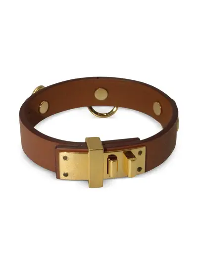 brown leather gold-tone hardware clasp fastening three gold-tone rings Normal everyday use and external agents may reduce the lustre of gemstones and gold surfaces. To maintain, use specific, non-abrasive products specially meant for cleaning jewellery.