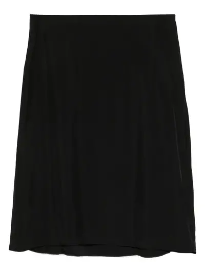black straight hem A-line shape side seam pockets minimal seams subtle drape