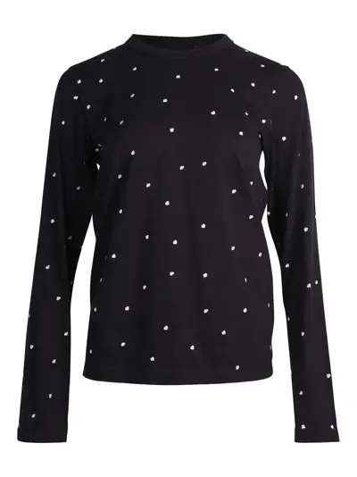 black cotton polka dot pattern embroidered design long sleeves crew neck
