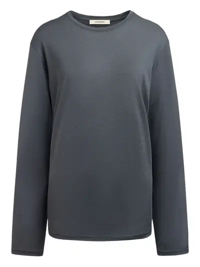 charcoal grey crew neck long sleeves jersey fabric straight hemline