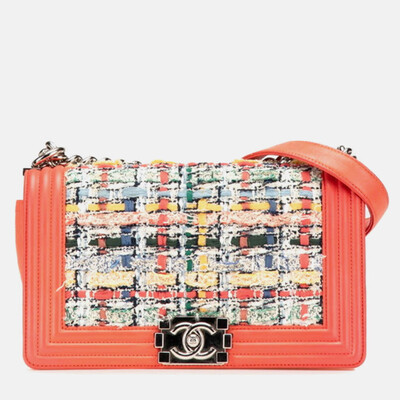Electric and unapologetic, this Chanel Boy Bag in vibrant tweed and soft lambskin redefines Parisian chic. The bold color play — anchored in a striking orange — meets the structured Boy silhouette for a look that is both contemporary and unmistakably Chanel. A collector’s piece with runway attitude and streetwise energy.