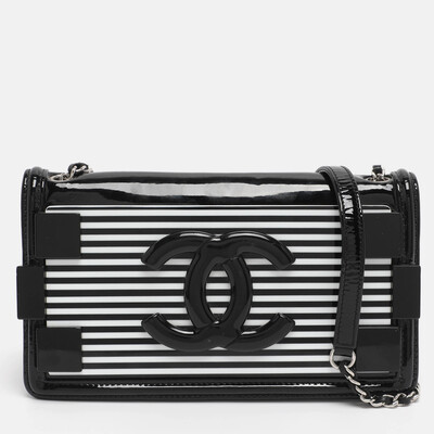 Chanel Black/White Stripe Plexiglass And Patent Leather East/West Boy Brick Flap Bag 1209435 - 1 small