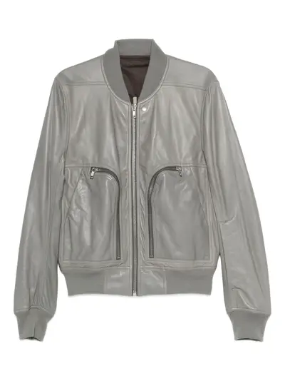 grey leather zip fastening baseball collar zip-fastening pockets ribbed trim long sleeves