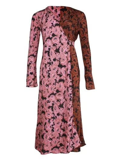 pink floral print wrap silhouette long sleeves self-tie belt Condition: EXCELLENT. This previously owned item is in near-perfect condition with no signs of damage or use.