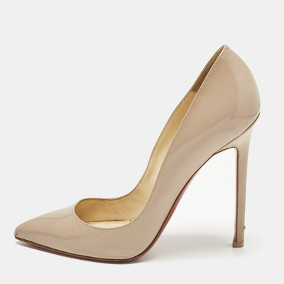 A wardrobe essential with a luxury twist, these pointed toe pumps embody Christian Louboutin’s sleek aesthetic. Crafted in beige leather, they offer a timeless silhouette elevated by the iconic red sole.