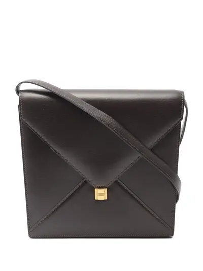 Box Calf leather body in Ebene color flat leather strap front flap with clasp closure interior slip pockets brown This item has no inclusions. Condition: GOOD. This previously owned and used item is in good condition with minimal signs of use. This may include fading of material or plating and scratches. Due to the exclusivity of this item and its limited availability, processing and delivery might take longer than usual. Please refer to the photos on this product page for a detailed view of the item, including any damages declared.