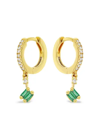 gold-tone prong-set round-cut diamonds totalling of 0.14 carats prong-set baguette-cut emerald totalling of 0.20 carats hoop design drop design secure fastening These earrings come as a pair. Normal everyday use and external agents may reduce the lustre of gemstones and gold surfaces. To maintain, use specific, non-abrasive products specially meant for cleaning jewellery.