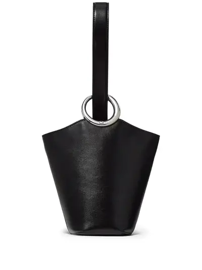 black leather ring detail adjustable shoulder strap bucket silhouette lobster-clasp fastening detachable zipped pouch