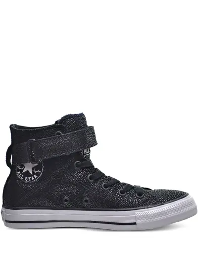 black leather hook and loop fastening side logo patch high top front lace-up fastening round toe rubber sole These styles are supplied by a premium and authenticated sneaker marketplace. Stocking only the most sought-after footwear, they source and curate some of the most hard to find sneakers from around the world.