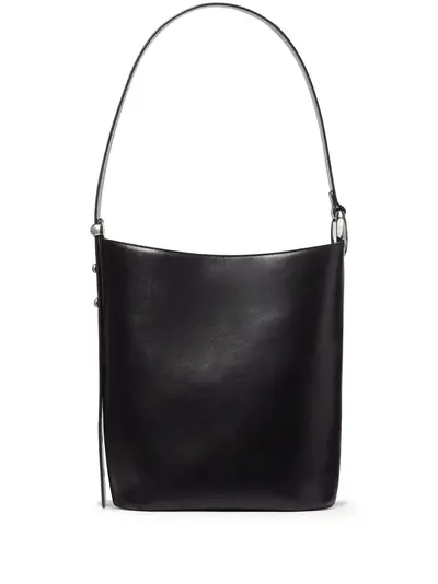 black leather single top handle silver-tone ring detail open top main compartment