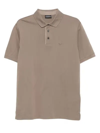 brown three-button placket short sleeves embroidered eagle logo straight hem cotton