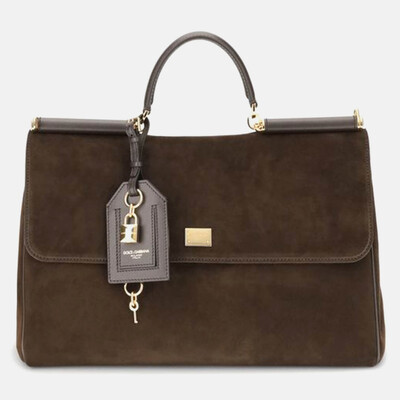 Embodying the essence of understated luxury, the Dolce and Gabbana Sicily Brown Suede Handbag is a masterclass in refined texture and timeless elegance. Its rich, supple suede surface evokes a warm, tactile richness, while the silhouette remains effortlessly poised—perfect for elevating both casual and sophisticated ensembles. This piece speaks to the modern connoisseur who values classic craftsmanship infused with a subtle, earthy charm.