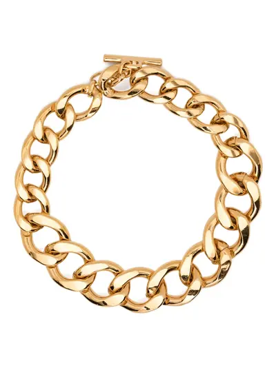 gold-tone T-bar fastening polished finish engraved logo