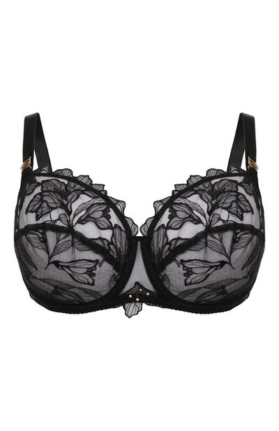 Бюстгальтер выполнили из стрейчевого нейлонового тюля с цветочной вышивкой, подчеркнутой люрексом. Модель из коллекции Desir et volupte украсили заклепками на перемычке между мягкими чашечками и пряжками на регулируемых бретелях.