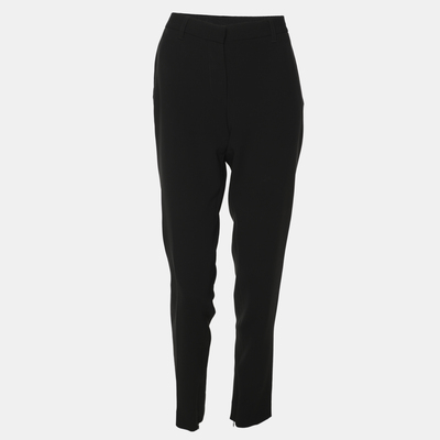 Effortlessly tailored, these Moschino trousers are cut from black crepe for a fluid yet structured drape. With their versatile silhouette, they transition seamlessly from office wear to evening styling with ease.