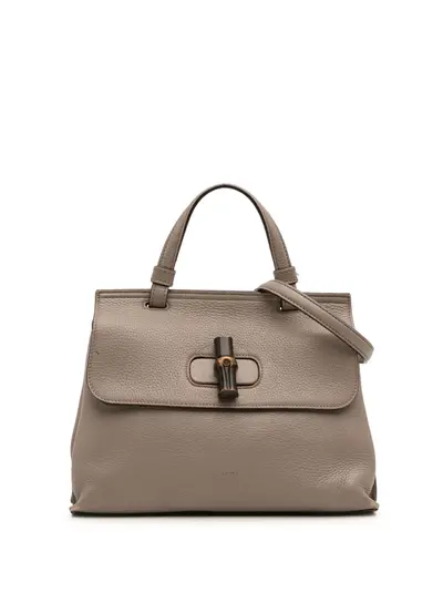 leather body flat top handle detachable flat strap front flap with a bamboo bullet twist lock closure interior zip and slip pockets brown Serial Number: 370831 527066 Inclusions: shoulder strap. Condition: GOOD. This previously owned and used item is in good condition with minimal signs of use. This may include fading of material or plating and scratches. Declared Damages: Interior Lining Feature(s) Moderate Stains. Please refer to the photos on this product page for a detailed view of the item, including any damages declared.