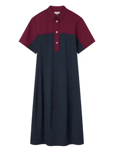 navy blue burgundy yoke short sleeves collared neckline button placket A-line skirt
