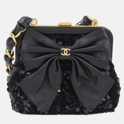 Chanel Bow Black Tweed and Spangles Clutch Bag 1213759 (чёрный, lpn30946899)