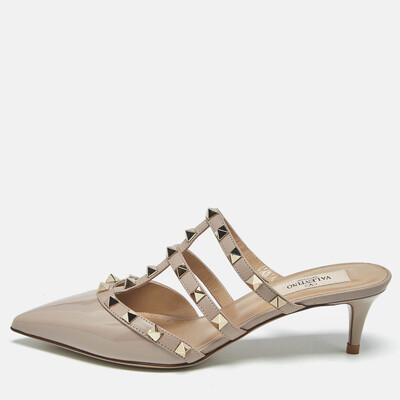 Valentino Beige Leather and Patent Leather Rockstud Mules Size 35.5 1213391 (бежевый, lpn30947434)