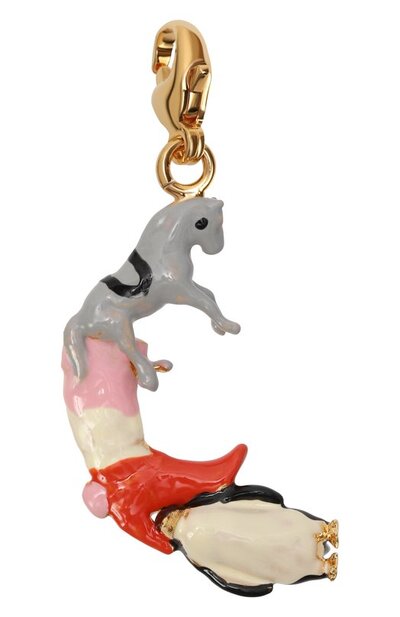 Подвеску-шарм в виде литеры C изготовили из латуни с покрытием разноцветной эмалью. Изделие из серии Marni Alphabet дополнили карабином «лобстер».