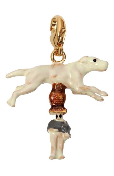 Подвеску Alphabet с застежкой-карабином изготовили из латуни с золотистым финишем. Шарм в виде буквы Т из фигурок вручную раскрасили эмалью.